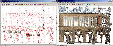 Spares point cloud calculated with BUNDLER (left), dense pointcloud computed with PMVS (right)